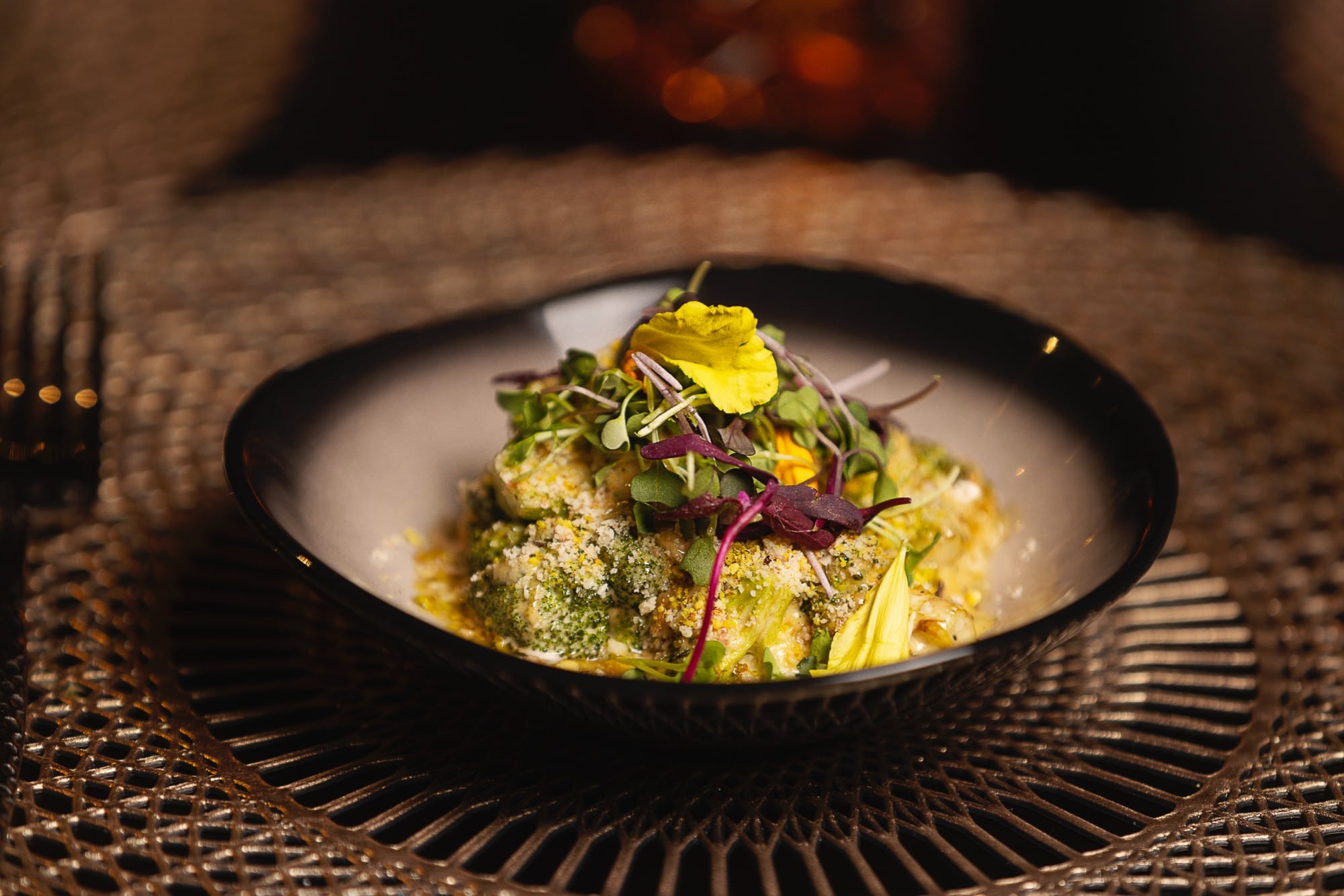 Grilled broccoli, parmesan cheese, toasted peanuts, serrano chili, bocado mayonnaise.