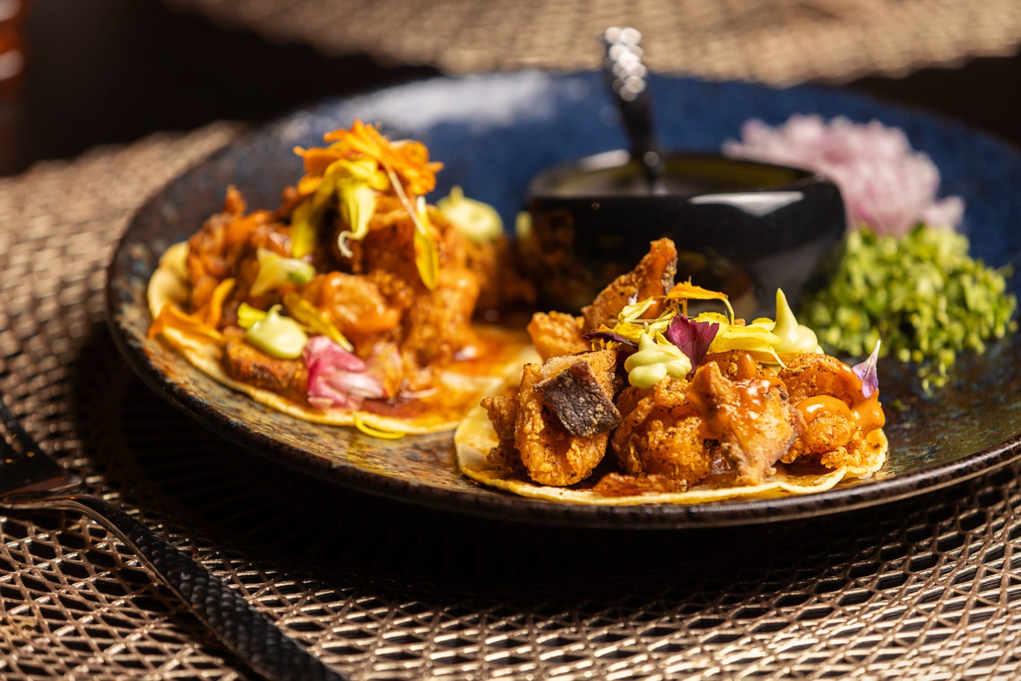 Octopus, Shrimp, Cheese Crust, Brave Sauce, Cilantro, Roasted Onion & Avocado